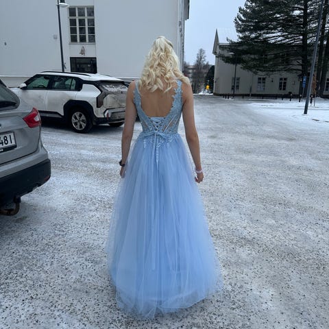 iIta- tai vanhojentanssimekko kokoon S-M. Takana olevan nyörityksen ansiosta kokoa on mahdollista säätää. Puvussa on tyllimateriaali ja se on shamppanjan värinen. Käytetty pari kertaa ja hyvässä kunnossa. Ostettu iltapuku outletista