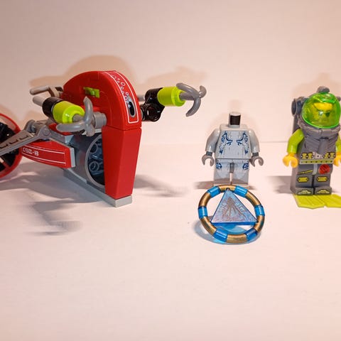 Setistä puuttuu toisen figuurin pää, kaksi pientä palaa, kolme tarraa ja ohjeet.