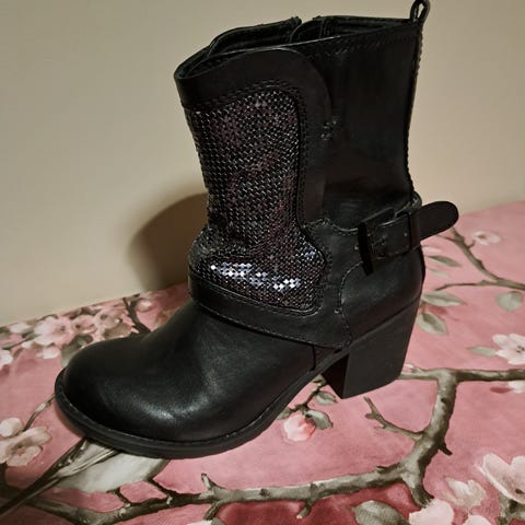 Jana nilkkurit. Upeat metallinhohtoiset koristenauhat. Sisäpuolella vetoketju. Korko 5,5 cm. Lämmin karvavuori. Nouto Länsimäestä n. 500 m Mellunmäen metroasemalta tai postitus. Ostaja maksaa postituskulut.