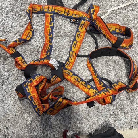 Säädettävät 3XL valjaat ja itse kelautuvalla köysi.