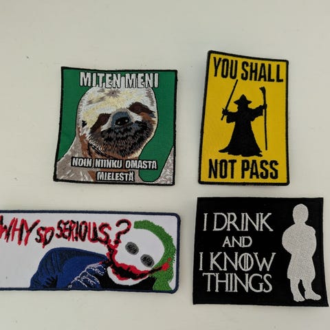 Postimerkin hinnalla 2,75e toimitus kirjeenä onnistuu myös. Yhdellä merkillä mahtuu max.9 haalarimerkkiä.