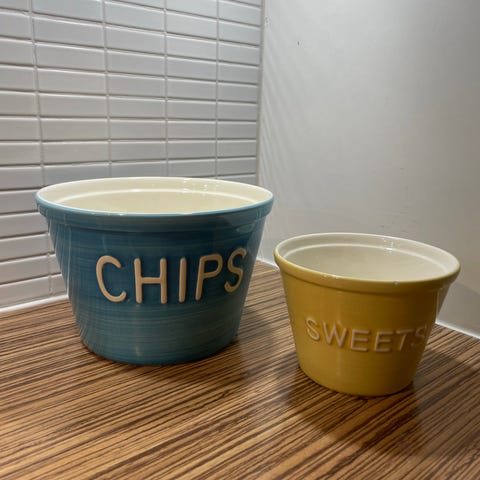 Bruka Designin klassikko on sipsikulho. Kulhossa valkoisin kohokuviokirjaimin ”Chips”. Yhdistä muihin Brukan astioihin! Materiaali: keramiikka