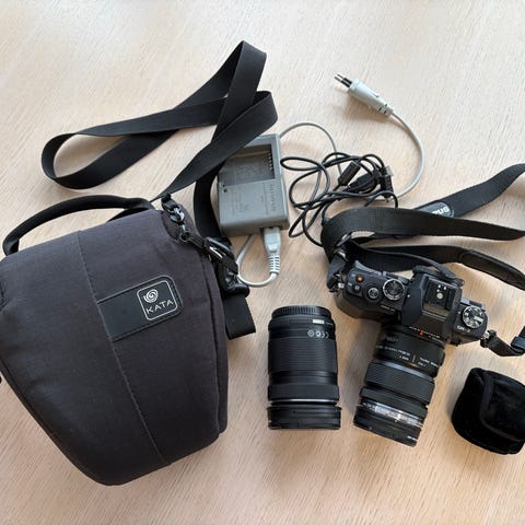 Myydään kamerapaketti - kamera ja 2 objektiivia.