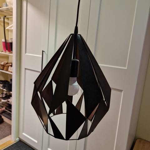 Valaisimen leveys n. 25 cm, korkeus 23 cm, kokonaiskorkeus 30 cm.