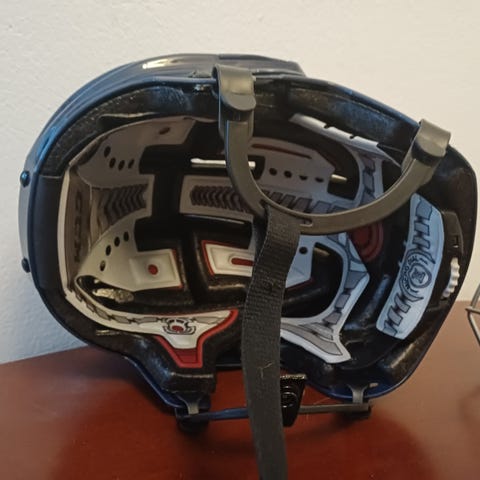 CCM FL60 jääkiekkokypärä ristikolla, koko S, musta väri. Hyväkuntoine