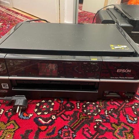 Epson XP-3105 tulostin. Ei mustetta. Käytetty vaan sen verran mitä mustetta tuli ostaessa mukana. Mukana tulostusohjelman asennuslevy.