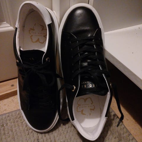 Myydään muutaman kerran käytössä olleet uudenveroiset Ted Bakerin tennarit. Koska lähes käyttämättömät niin eivät ole ”muotoituneet jalkani mukaiseksi” käytössä. Materiaali nahkaa. Ovh ostaessani noin 150€.