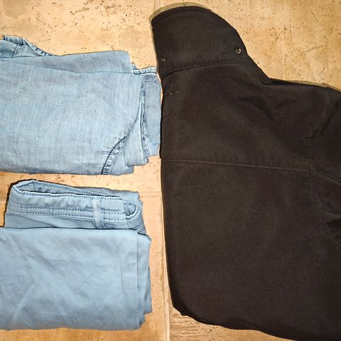 Erittäin siistikuntoiset farkut koossa 140. Paita koossa 146.