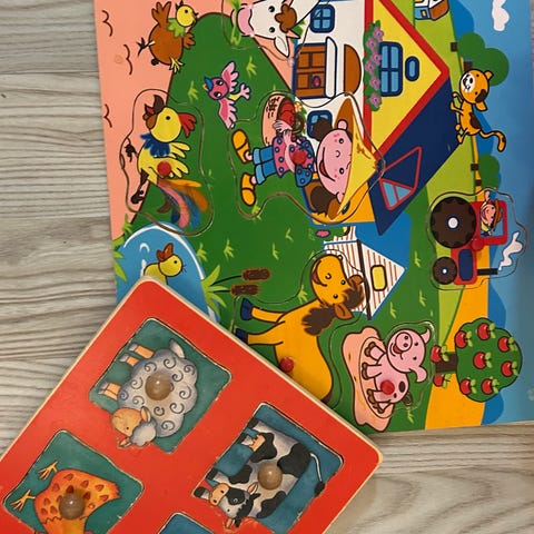 Hapen auto-aiheinen nuppipalapeli ja isompi eläinaiheinen nuppipalapeli. Palat hieman kuluneet reunoilta. Kissa ja koiratalous. Vain nouto.