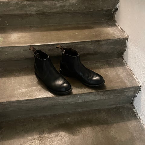 Upeat chelsea saappaat! Todella laadukasta nahkaa, crepe kumi pohjat, alkuperäiset sisäpohjat irronneet, korvattu ohuilla pohjallisilla. Ei hajuja, lepolestit ei kuulu kauppaan. Uudet 500-600€! Vaihtoa voi ehdottaa Crockett & Jones, Loake, Red Wing, Santoni, Paraboot, Trickers ym. Kenkiin.