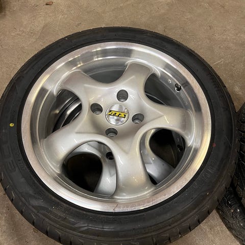 Tästä jollekin hieno ja hyväkuntoinen sarja kesäksi! Vanteet ovat suorat, mutta muutamia jälkiä löytyy jo käytetyistä. 3 viimeisintä kuvaa pahimmista jäljistä vanne 1 ja vanne 4.