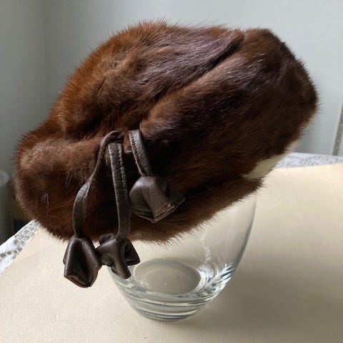 Kauniin beigen värinen minkkihattu ja kauluri. Hattu lienee kokoa 57 mutta lappua ei ole. Aika kapea. Kaunis nahka josta voisi vaikka tehdä jotain. Kauluri on hyväkuntoinen. Kaulurissa lukee Källby Nerz Finland. Tässä materiaalia uusiokäyttöön tai tällaisenään. Hinta yhteensä 20 e.