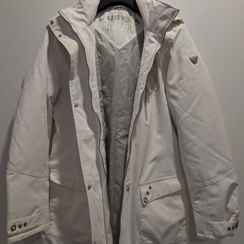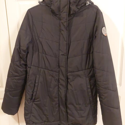 Luhta pidempi kevyt toppatakki, koko 36. Väri kiiltävän tummanharmaa, paristi päällä ollut joten kunto moitteeton.