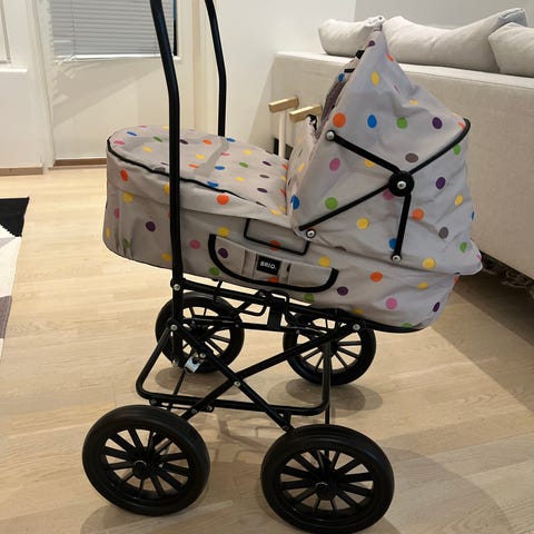 Myydään kauniit ja tukevat BRIO-merkkiset vanhat nukenvaunut.