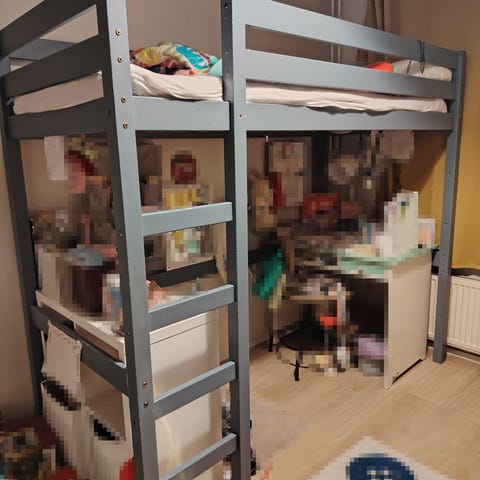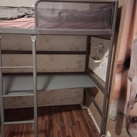 Myydään metallirunkoinen Ikean parvisänky. Väri hopeanharmaa. Sänkyyn mahtuu 90cm patja.