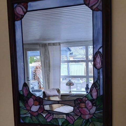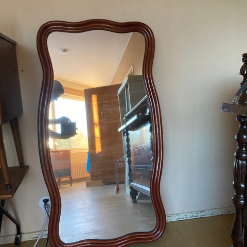 Peilin koko 55 x 145 ja väri näkyvät kuvassa, kehys on puinen ja antiikkityylinen.