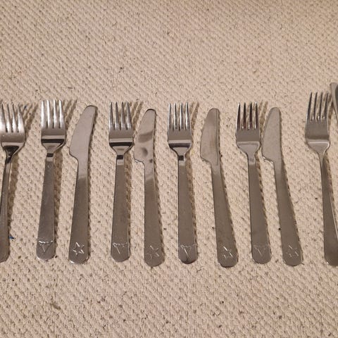 Iittala lasten aterimet, 5-osainen setti. Kaupan päälle 2 muovikahvaista Muumi-aiheista aterinta. Hyväkuntoiset muuten, mutta joistain kuva hieman haalistunut. Ainoastaan nouto Tapanilasta!