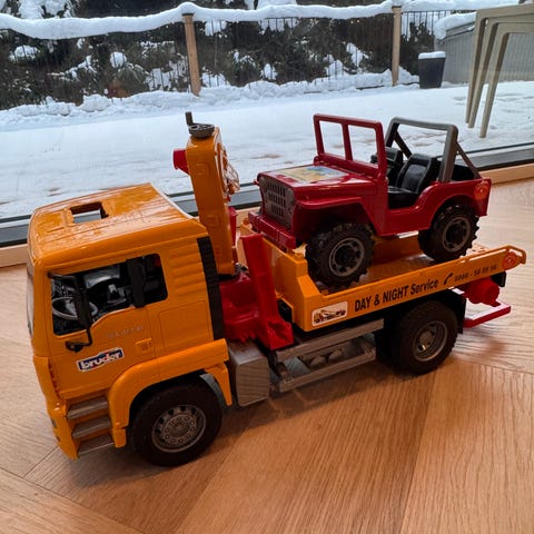 Bruder hinausauto. Muuten hyvä kunto mutta hinaukseen tarvittavia osia puuttuu.