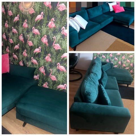 Muuten upea ja tyylikäs sohva. Sohvaan mahtuu makoilemaan kaksi henkilöä ja muutenkin ihanan tilava.