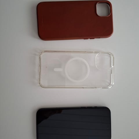 Apple iPhone 15 Plus -älypuhelin, 128 GB tallennustilalla, valkoinen väri. Puhelin on käytetty, akun huippukapasiteetti 87 %. Laitteen takaosassa näkyy halkeamia ja käytön jälkiä. Valmistuspäivä heinäkuu 2023, viimeinen käyttö lokakuu 2023.