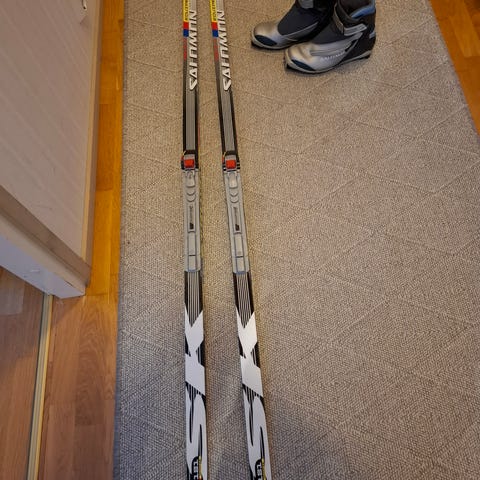 Suksien pituus arviolta 185-190cm, kokoa ei lue suksessa