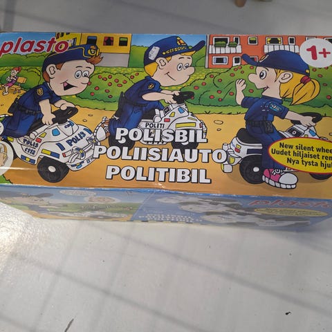 Plasto lasten poliisiauto. Ehjä ja toimiva peli, mutta jotkin tarroista osittain irronneet tai haalistuneet. Ollut ainoastaan sisäkäytössä. Allergiakoti. Ainoastaan nouto Tapanilasta!