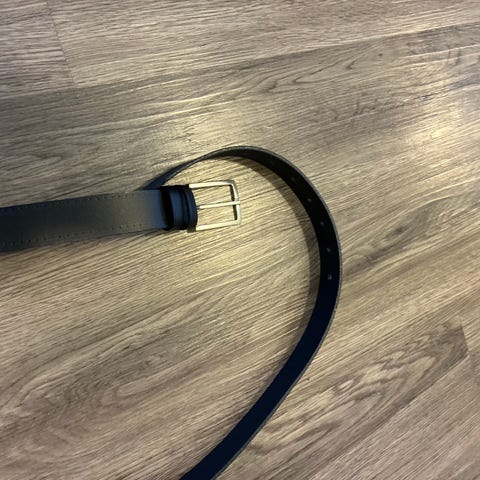 Mara Collection miesten nahkavyö mustana. Vyössä on hopeanvärinen solki ja valkoiset ompeleet. Vyön leveys on noin 3 cm ja se on valmistettu aidosta nahasta.