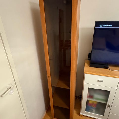 Koivun värinen vitriinikaappi