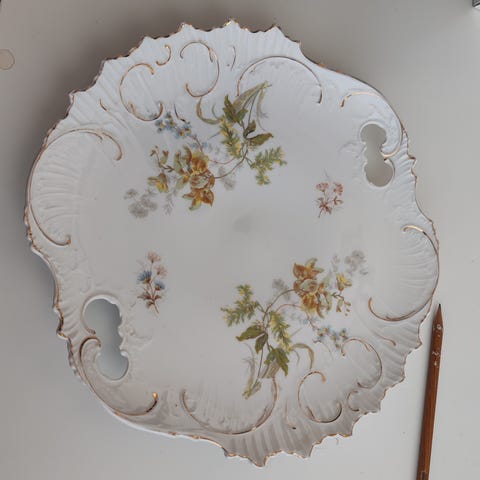 Keraamiset tarjoiluastiat, yrttiruukku ja 2 arabian lasia.