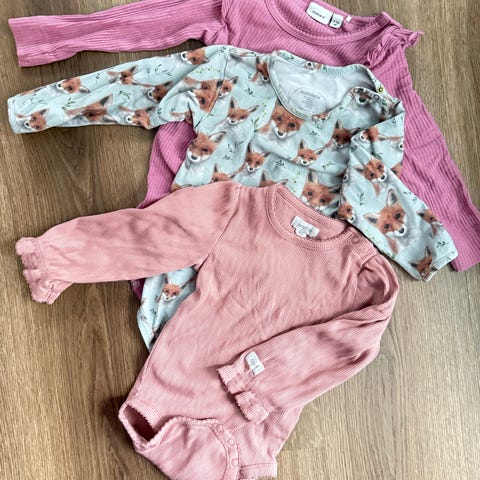 Vähän käytetyt, uudenveroiset Newbie lappuhaalarit ja perus haalarit kokoa 80 sekä Metsolan leggingsit 74-80.