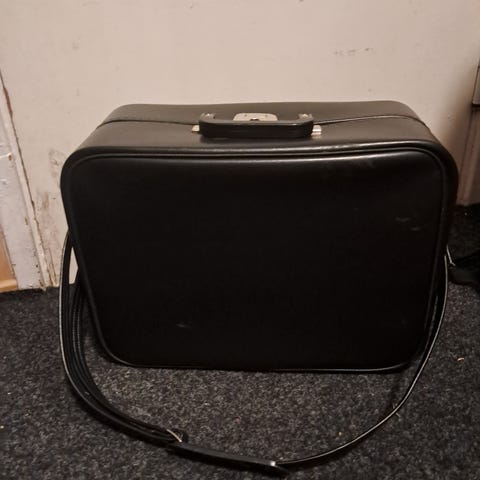 Hopeanvärinen matkalaukku, lähes uusi