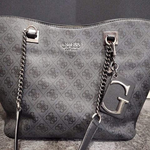 Guess musta jenkeistä Guessin liikkeestä ostettu laukku. Koko 41x27cm. Laukun kulmissa hieman kulumaa.