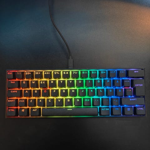 Myynnissä langaton mekaaninen Keychron K6 RGB pelinäppäimistö jossa on punaiset Gateron kytkimet. Runko on muovi mutta alumiinikehyksellä. Olen lisännyt äänenvaimennusmattoa pohjaan ja teipannu PCB:n (äänimaailmaa parannneltua siis). Kaikki mitä kuvassa tulee mukaan.