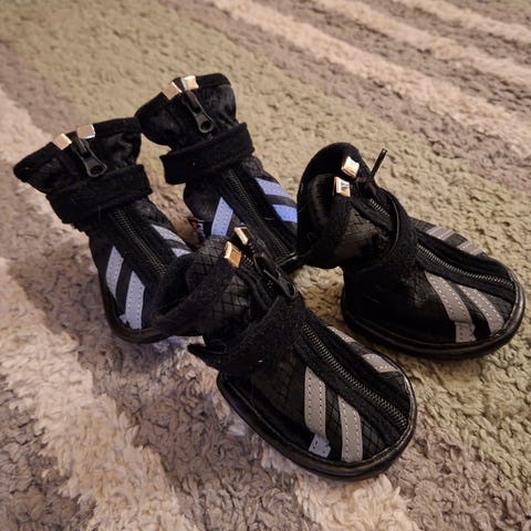 Rukan koiran tossut koossa 1. Jäänyt käyttämättömiksi väärän koon takia.