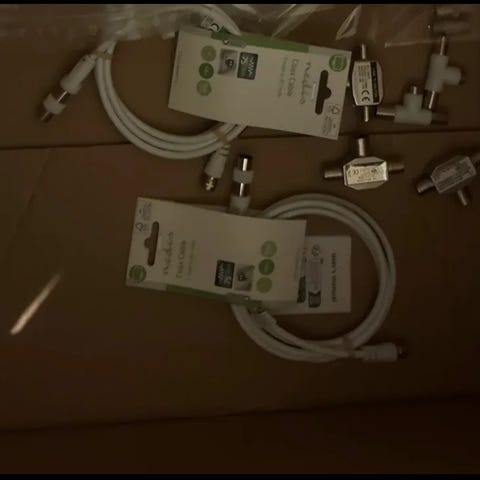 Kaapelimodeemin johto 3,5m ja antenni jakaja/suodatin johdon kummassakin päässä f-liitin. Jakajan ansiosta voit liittää samaan tv pistokkeeseen kaapelimodeemin ja television.