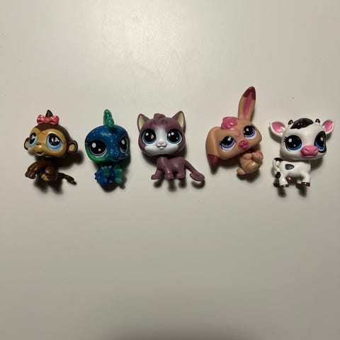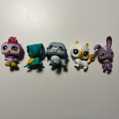 Littlest Pet Shop -leluhahmot, yhteensä 5 kappaletta. Hahmot ovat eri eläinhahmoja, värikkäitä ja muovisia. Sopivat lasten leikkeihin ja keräilyyn.