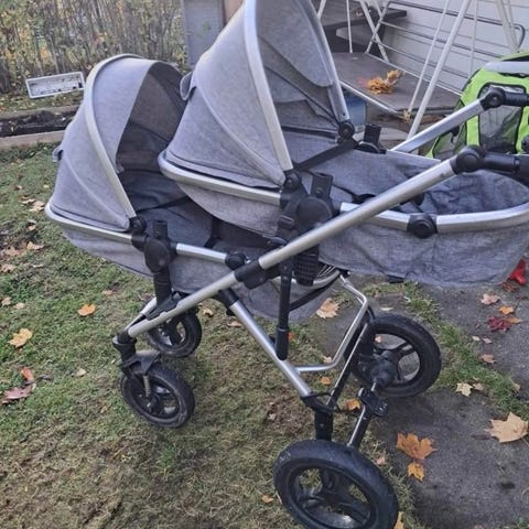 Emmaljunga lastenrattaat. Mukaan tulee vaunukoppa, johon kuomun saa irroitettua ratasosasta. Kuomussa on kiinni hyttysverkko jonka saa vetoketjulla piiloon kun sitä ei käytä.