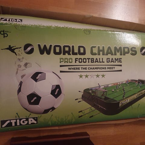 Vähänkäytetty stiga jalkapallopeli. 2 jalkapalloa ja kaikki kunnossa.