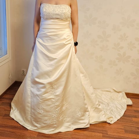 Myydään uusi hääpuku koko 46. Tilasin näitä 2 eri kokoa ja tämä jäi käyttämättömäksi. Tervetuloa sovittamaan! Nouto mieluiten Tikkurilasta