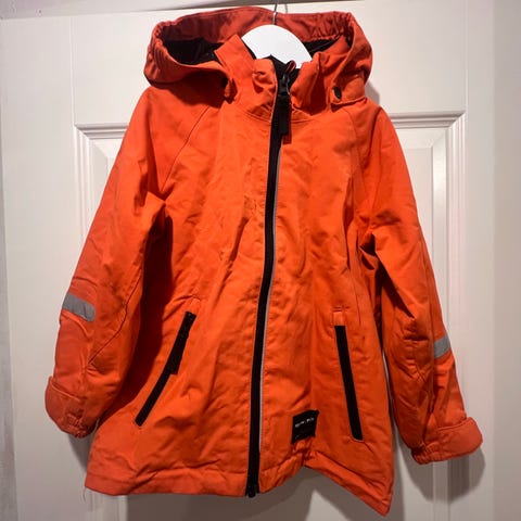 Mintunvihreä POPin kuoritakki koossa 110. Pitää tuulta ja vettä. Helmassa, hihansuissa, kauluksessa ja vetoketjun kohdalla jo kulumaa, mutta yleisilme OK. Pesty ja kuivattu pesuohjeiden mukaan.