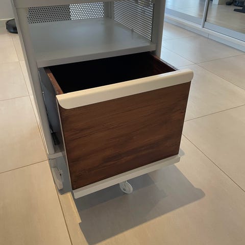 Muutaman vuoden vanhat laatikot jotka on käsitelty heti uutena värittömällä vahalla. Ulkoapäin siisti käytetty, sisäpuolella käytön jälkeä enemmän. Kaikki osat tallella paitsi yksi ruuvi, on pysynyt hyvin kasassa ilman. (Niitä saa tilattua ikean sivuilta ilmaiseksi varaosina.)
