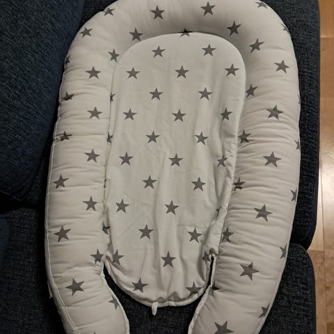 Ihana vauvan unipesä. Toinen puoli keltainen, toisella suloinen pöllö-kuviointi.