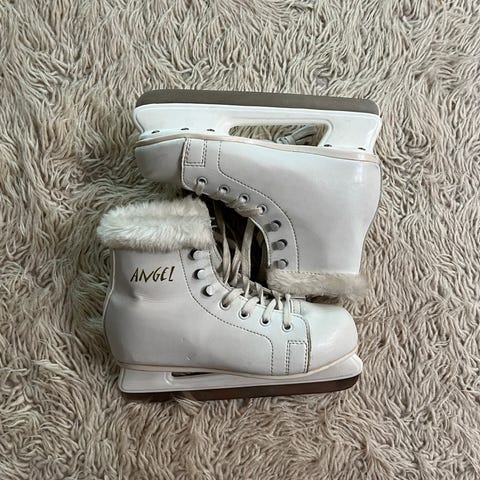Angel lasten luistimet koko 32 valkoisella värillä. Luistimissa on pehmeä vuori ja ne soveltuvat muuhun luisteluun. Luistimien teroitus jää ostajalle.