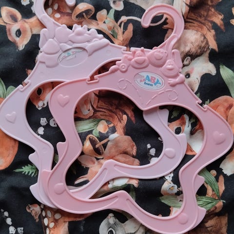 Myydään 5 kpl hyväkuntoisia Baby born henkareita.