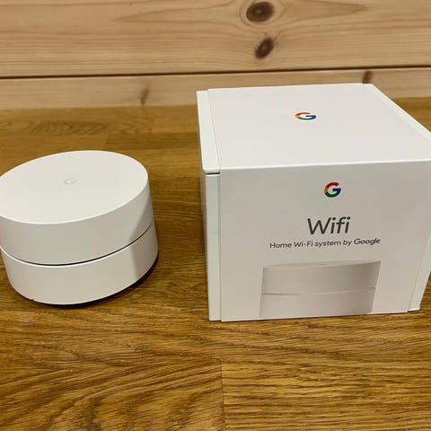 For sale: Google Wifi Mesh router (single puck/unit). This device helps improve wireless coverage and speed throughout your home or office—easy setup and management through the Google Home app.