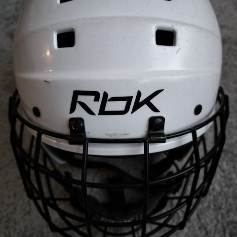 Vähän käytetyt lasten luistimet ja jääkiekkokypärä.