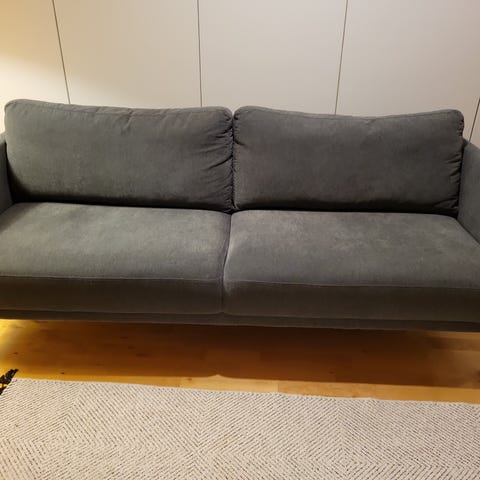 Hyvässä kunnossa oleva vihreä kolmen istuttava sohva! Kotitaloudessa ei ole ollut lemmikkejä.