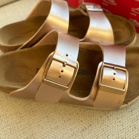 Birkenstock lasten sandaalit tytöille, koko 33. Sandaalit ovat helmiäidvaaleanpunaiset ja niissä on säädettävät soljet.