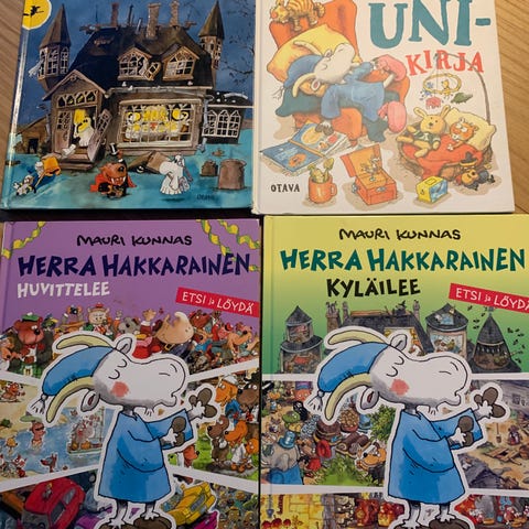 Hyvää yötä Herra Hakkarainen on näistä siistimmässä kunnossa, siinäkin jotain suttua näkyy sivujen alareunassa, koitin ottaa kuvan.