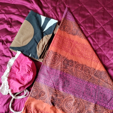 Marimekon Raita vihreä-valkoinen pöytäliina. Mitat 132 x 137 cm.
